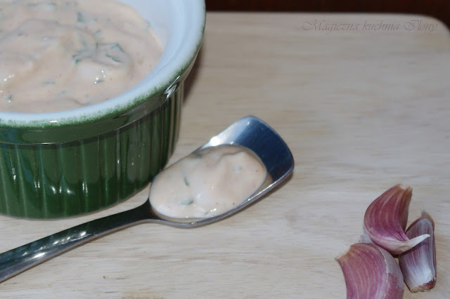 Jak wspominałam, częstując Was Pizzą, dzisiaj zrobimy pierwszy sos, który jest rewelacyjnym dodatkiem do wszelakich fast foodowych dań. Prawdę mówiąc w mojej lodówce ten sos jest stałym mieszkańcem. Zjadamy go do wszystkiego... jajek na twardo, kanapek, a nawet do mięs na obiad.