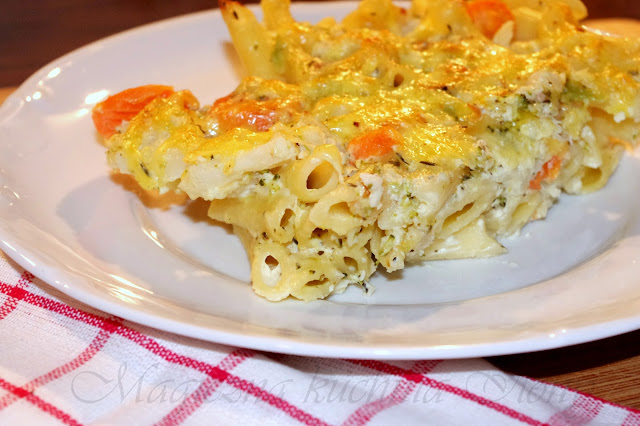 Serowa zapiekanka z makaronem i warzywami