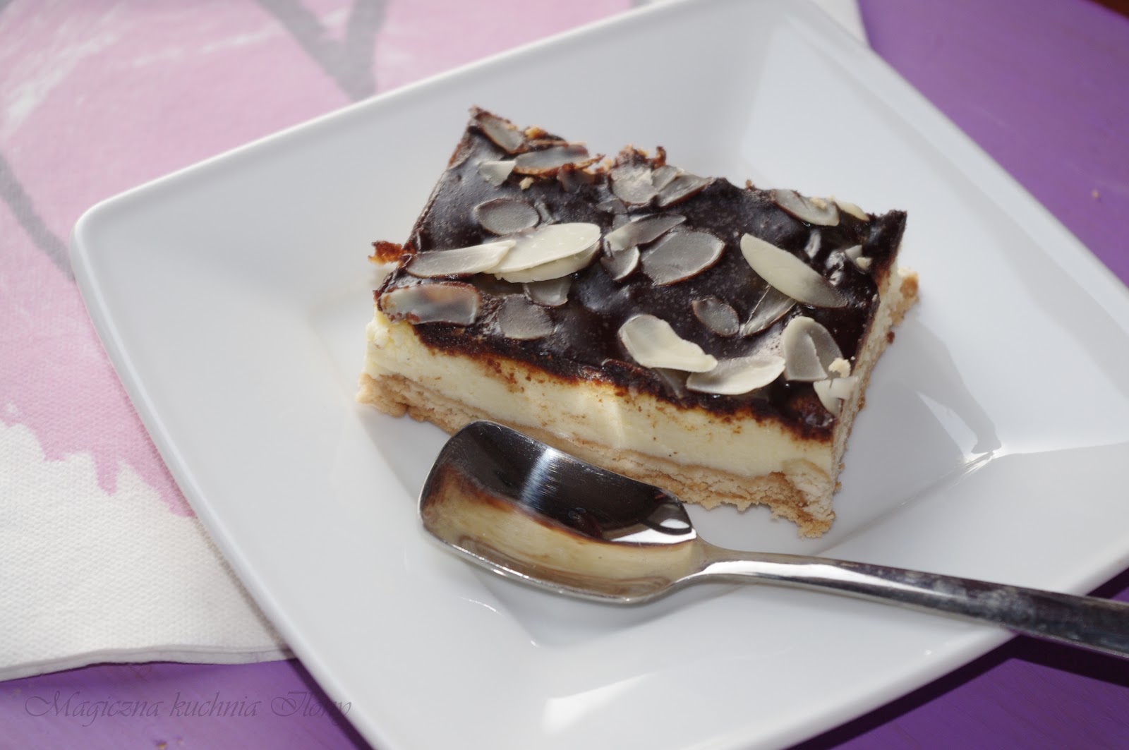Jak widać wyszedł lekki zakalec, ale cóż nikt nie jest doskonały, jak widać pieczenie takich ciast nie jest moją mocną stroną. Ale wszystko przede mną. W domu smakowała bardzo, ja przyznam mało skromnie byłam zachwycona, więc będę piekła często, dojdę do wprawy i osiągnę odpowiedni poziom.