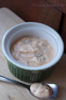 Jak wspominałam, częstując Was Pizzą, dzisiaj zrobimy pierwszy sos, który jest rewelacyjnym dodatkiem do wszelakich fast foodowych dań. Prawdę mówiąc w mojej lodówce ten sos jest stałym mieszkańcem. Zjadamy go do wszystkiego... jajek na twardo, kanapek, a nawet do mięs na obiad.